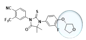 在药物设计之初,研究团队发现,全球首个二代AR拮抗剂在动物体内主要经氧化、脱甲基及水解反应代谢,而其代谢物和原型药物活性相当。进一步发现,MDV3100脱甲基和水解代谢反应的位点主要在分子末端的N-甲基酰胺基团上(图1)。这意味着,这个尾链片段允许有较大的改动,在不影响药物活性的情况下,还可以减少临床上的活性代谢物,简化后续的研究。